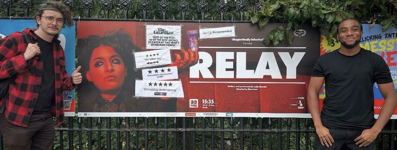 As part of the continued development of our TEAM Collaborate members, we were able to offer the opportunity of visiting the Edinburgh fringe to two of the collective, where we were also producing Relay by Leila Navabi